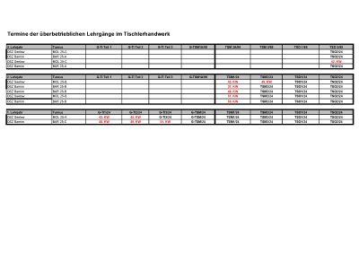der überbetrieblichen Lehrgänge im Tischlerhandwerk