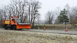 Passend zum Wetter bereiten sich die zukünftigen Straßenwärter und Straßenwärterinnen auf den Winterdienst vor. Ein Bestandteil der Ausbildung ist auch