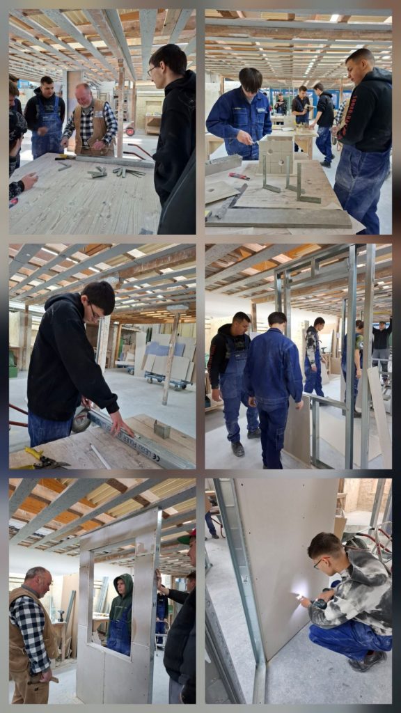 Die Praktikanten im Bereich Trockenbau stellten ihr Können beim Errichten von Trennwänden, beim Anfertigen traditioneller Fensteröffnungen sowie von Bogenkonstruktionen unter Beweis.