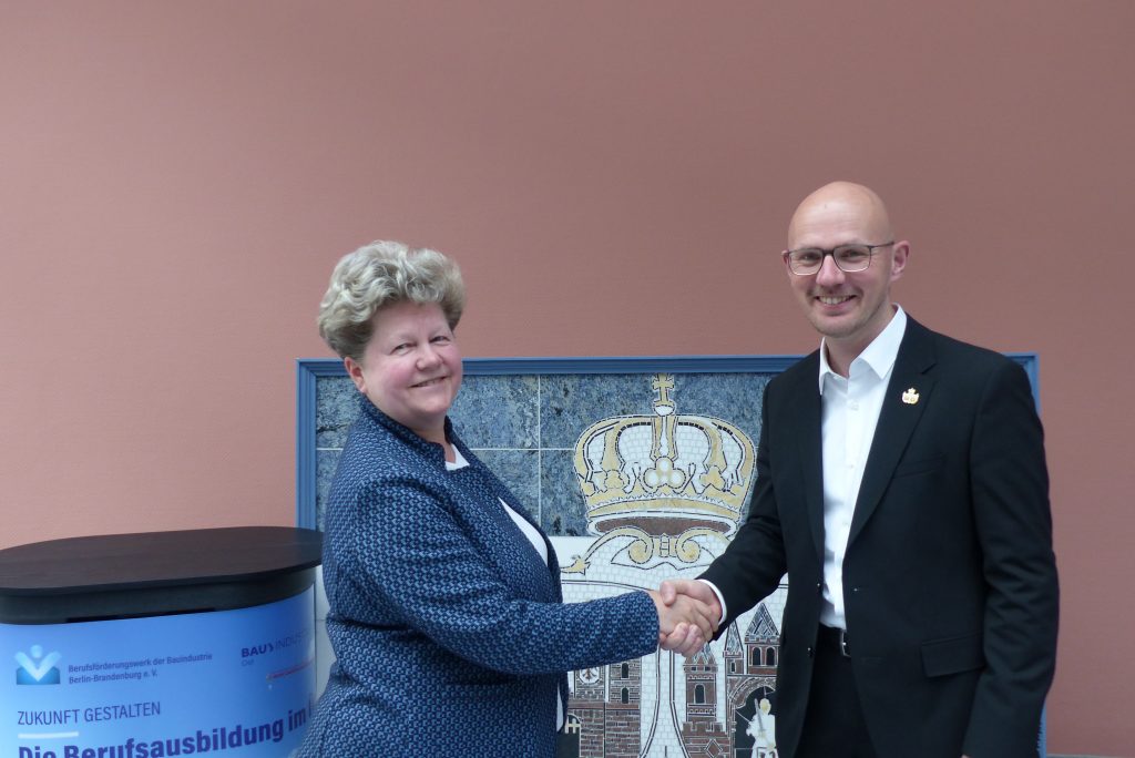 Großes Interesse an der Ausbildung im Baugewerbe zeigte der neue Oberbürgermeister der Stadt Brandenburg, Herr Daniel Keip, bei seinem Besuch am 26.03.2026 in unserem überbetrieblichen Ausbildungszentrum. Vor Ort informierte er sich in einem Gespräch mit der ÜAZ-Leiterin Kornelia Neumann über unsere vielfältigen Ausbildungsangebote. Dabei wurden sowohl Erfolge als auch Herausforderungen thematisiert, mit denen die berufliche Ausbildung im Baugewerbe derzeit konfrontiert ist. Ein Thema war die kommende Umsetzung der neuen Ausbildungsordnung ab dem Schuljahr 2026/2027. Weiterhin wurden wichtige Themen wie Fachkräftesicherung, Ausbildungsqualität und zukünftige Entwicklungen in der Bauwirtschaft intensiv diskutiert.