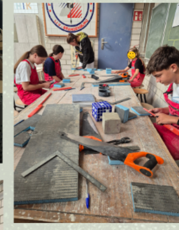 Hierbei erhielten sie Einsicht in vier Gewerke der Bauindustrie. Mauern, Fliesenlegen, Metallbauen und den IT-Bereich durften sie nicht nur theoretisch mit viel fachlichem Input, sondern auch praktisch ausprobieren. Es entstanden Würfel aus kleinen Mosaikfliesen, Hundehütten aus Kalksandstein, Traumwohnungen in SweetHome3D und Mensch-ärgere-dich-nicht-Spiele aus Metall. Die Schülerinnen und Schüler haben tolle Werkstücke herstellen können und haben im Rahmen eines gut besuchten, kurzweiligen Elternabends ihre Ergebnisse präsentiert.